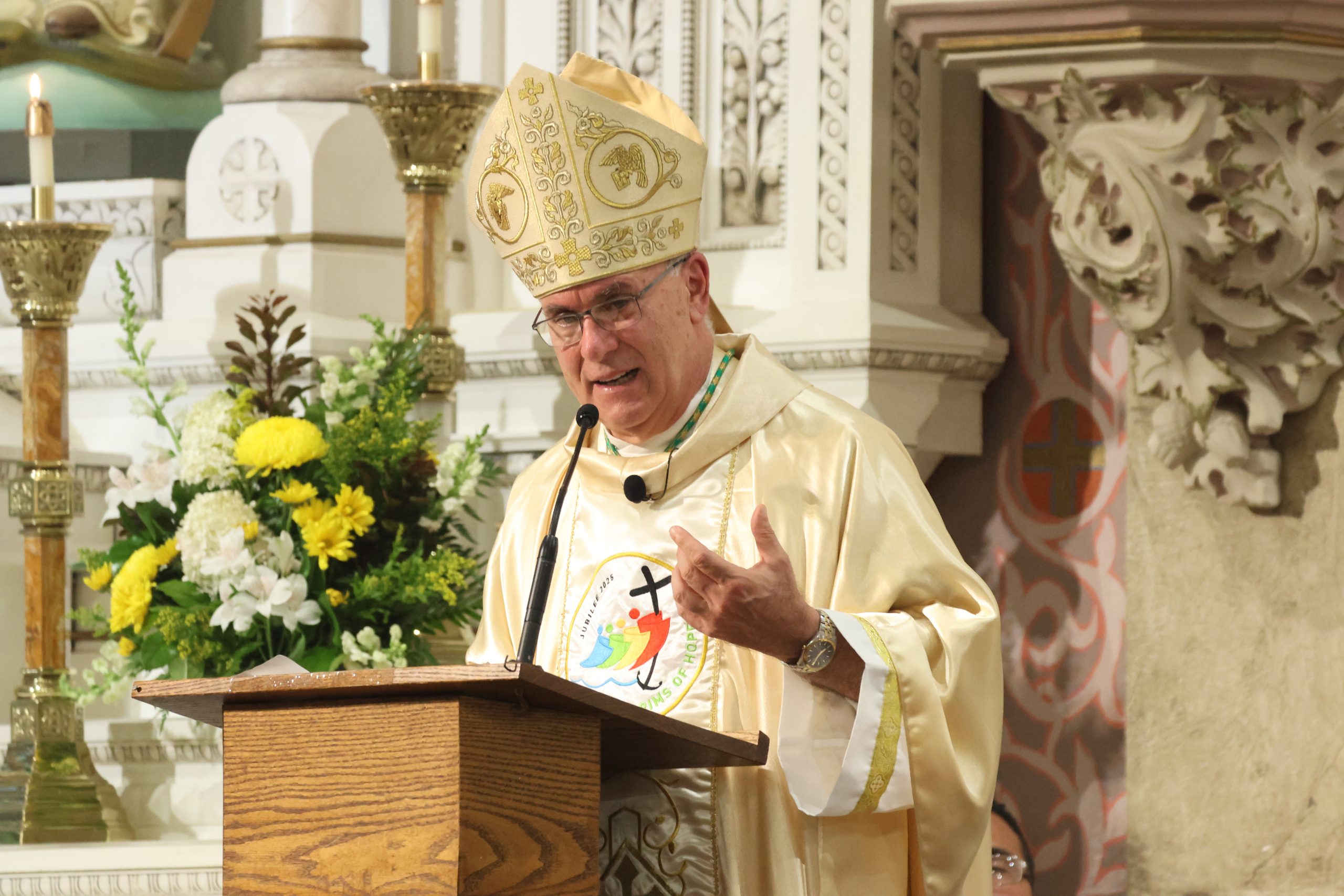 Bishop Rhoades preaches during the Jubilee Mass at St. Michael Church in Plymouth on Wednesday, September 3.